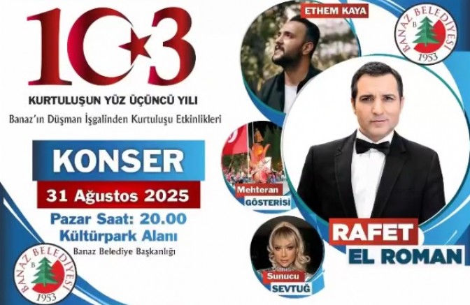 Banaz'ın kurtuluş günü etkinlikleri için aylar önce çalışmalara başlayan Banaz Belediyesi, başarılı başkan Zafer Arpacı önderliğinde muhteşem bir konserlede Banaz halkının kurtuluş coşkusunu tam anlamıyla yaşamasını sağlayacak.