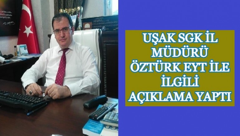 Cumhurbaşkanı Recep Tayyip Erdoğan tarafından onaylanan Emeklilikte Yaşa Takılanlar (EYT) ile ilgili düzenlenen yasa resmi gazetede yayınlanarak yürürlülüğe girdi. Yasanın yürürlülüğe girmesi ardından SGK Uşak İl Müdürü İbrahim Öztürk; EYT düzenlemesinden yararlanmak isteyen vatandaşların SGK İl binasına hücum etmesine gerek olmadığını, başvuruların E-Devlet üzerinden 7/24 yapılabileceğini belirtti. Öztürk, “Emeklik müracaatlarını yapacak sigortalıların ay içinde yapacakları tarihi takip eden ay başından başlayacaktır. Emeklik müracaatları şahsen yapılabileceği; gibi E-Devlet üzerinden de yapılabilecektir. Bu sebeple sigortalılarımızın ilk günlerde kurumda yoğunluk oluşmaması için uygun zamanlarda mümkün olabildiğince E-Devlet üzerinden müracaatta bulunulmasını önemle hatırlatırız” ifadesini kullandı.