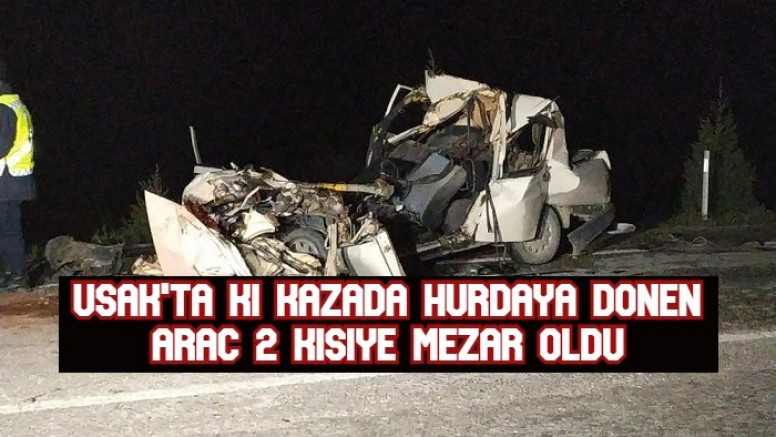 Uşak’ta civciv yüklü kamyona arkadan çarpan otomobil hurdaya dönerken araç içerisindeki 2 kişi hayatını kaybetti.