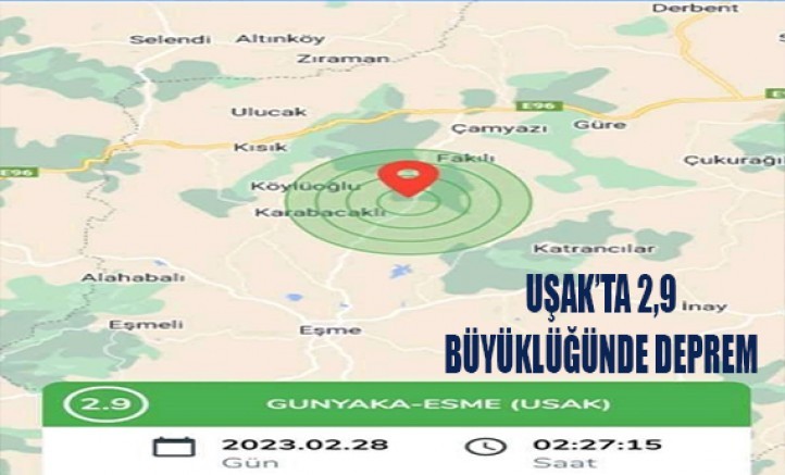 Uşak’ta gece saatlerinde Eşme ilçesine bağlı Günkaya köyünde 2,9 şiddetinde deprem meydana geldi.