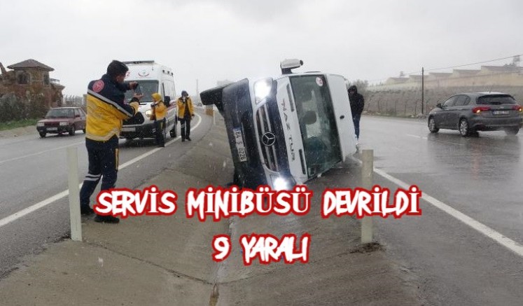 Uşak'ta bir tekstil fabrikasına işçi taşıyan servis kontrolü kaybolarak yan devrildi. Servis şoförü kazayı yara almadan atlatırken araçtaki 9 işçi yaralanarak hastaneye kaldırıldı.