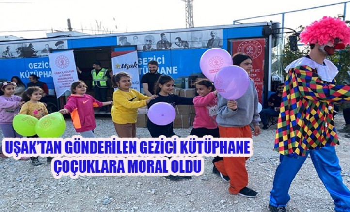 Kahramanmaraş merkezli ve 11 ili etkileyen depremin yaralarını sarmak içinı Uşak’tan gönderilen gezici kütüphane ve çadır, depremzede çocuklar için moral ve neşe kaynağı oldu.