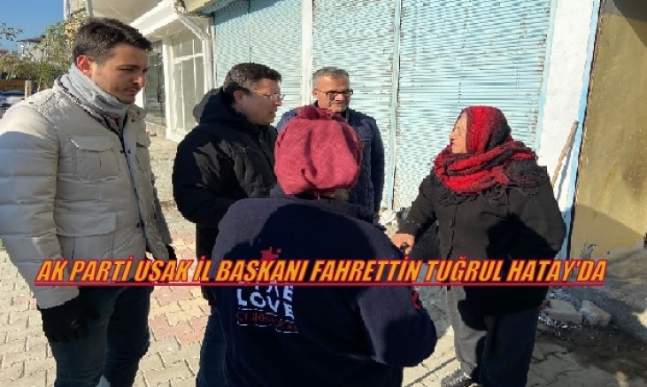 Ak Parti Uşak İl Başkanı Fahrettin Tuğrul Hatay’ın Samandağ ilçesinde depremden etkilenen vatandaşların ziyaretine gitti.