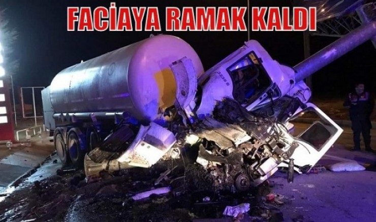 Çavdarhisar’da oksijen gazı yüklü tanker direğe çarptı, sürücü ağır yaralı - Faciaya ramak kaldı