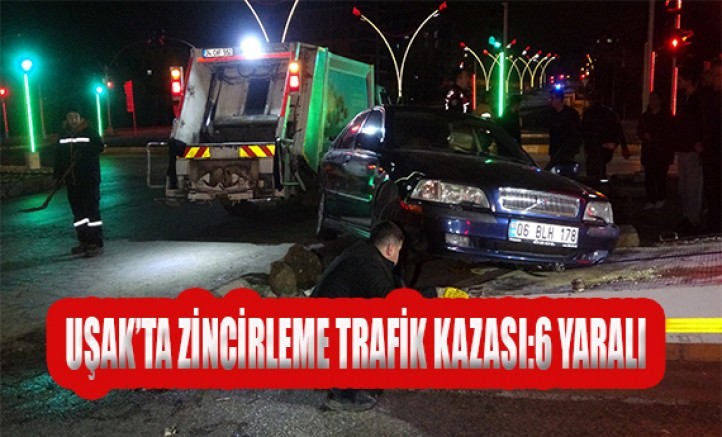 Edinilen bilgilere göre Uşak’ta Yavuz Sultan Selim Caddesi ile İstiklal Caddesi kesişiminde K.K. (25) idaresindeki 64 BR 078 plakalı otomobil, E.B. idaresindeki 06 BLH 178 plakalı otomobil ve Ö.A. (47) idaresindeki 35 DB 8306 plakalı otomobil çarpıştı. Çarpmanın etkisiyle araçlar savruldu. İhbar üzerine olay yerine polis ve sağlık ekipleri sevk edildi. Azada yaralanan K.K, R.B., C.M.A. ve T.S. yaralanarak çevre hastanelere kaldırıldı.