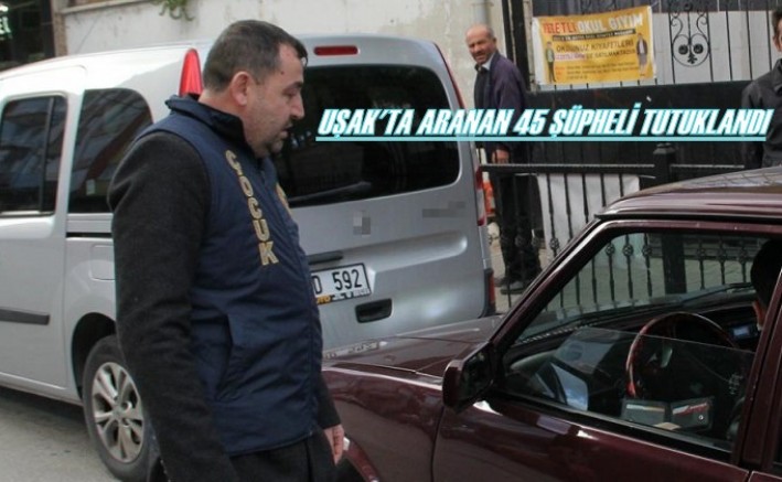 Uşak’ta polis ekipleri tarafından aranması olduğu belirlenerek yakalanan 60 kişiden 45’i, çıkarıldıkları mahkemece tutuklanarak cezaevine gönderildi.