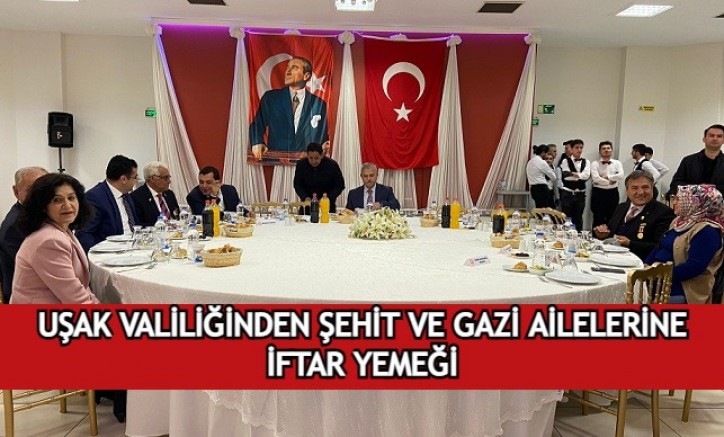 Uşak Valiliği tarafından Şehit ve Gazi Aileleri için iftar yemeği düzenlendi. İftar yemeğine, Uşak Vali Vekili Muammer Balcı, Uşak Belediye Başkanı Mehmet Çakın, Uşak Üniversitesi Rektörü Prof. Dr. Ekrem Savaş, Uşak İl Jandarma Alay Komutanı Fahri Semiz ve protokol katıldı.