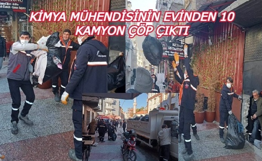 Belediye ekipleri çöp evden birikmiş çöpler, gazete ve çeşitli kağıt parçaları, plastik atıl vaziyette kaplar, pet şişeler, atıl vaziyette Dvd, Kitap eskileri ve çok sayıda kirli giyim eşyası topladılar. Çöp evin boşaltılması esnasında çevreye yayılan ağır ve kötü koku ise oradan geçmekte olan vatandaşların yolunu değiştirmesine sebep oldu.