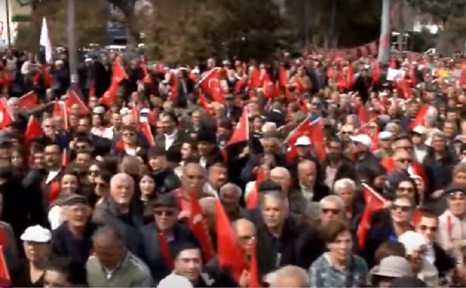 CHP teşkilatlarının yanı sıra çevre il ve ilçelerden de çok sayıda partili ve vatandaşın katıldığı mitingde meydanı dolduran kalabalık, ellerinde Türk bayrakları ve parti flamalarıyla Özgür Özel’e destek verdi. Yoğun katılımın olduğu mitingde vatandaşlar sık sık sloganlar atarak konuşmaları alkışlarla karşıladı