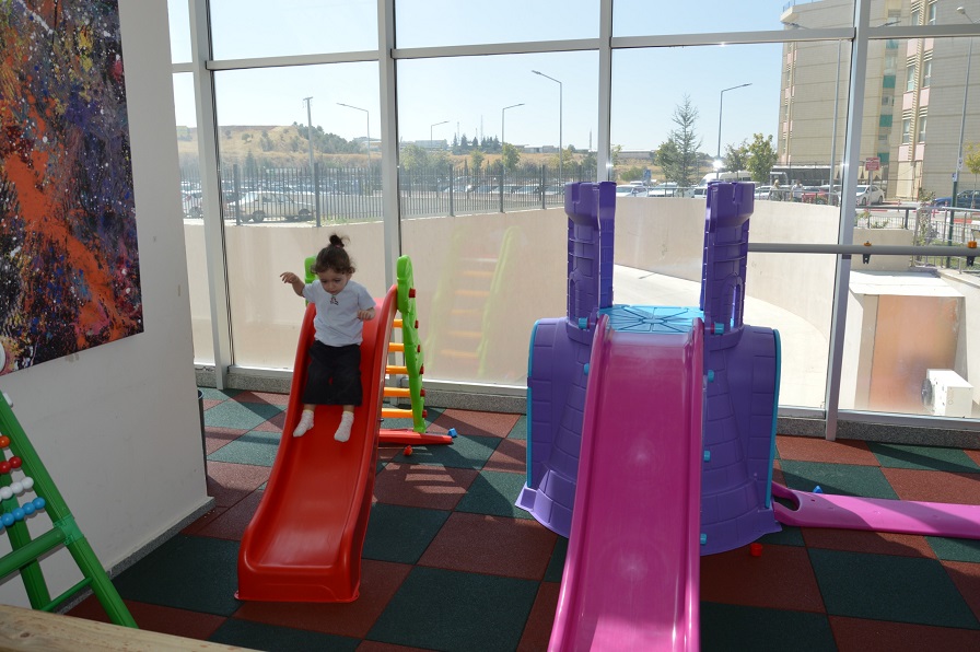 Hastaneye gelen minik misafirler için özel olarak hazırlanan oyun parkı, ziyaret saatlerinde çocukların güvenle vakit geçirebileceği renkli ve huzurlu bir ortam sunuyor. Aileler, çocuklarının keyifli zaman geçirebilmesi sayesinde ziyaretlerini daha rahat yapabilecek.
