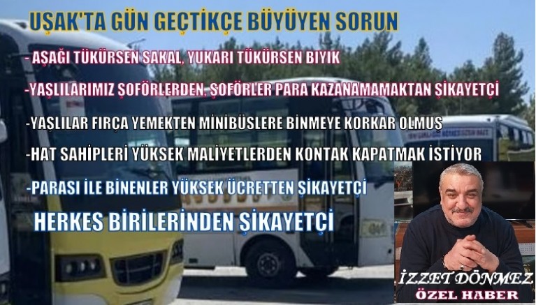Kıymetli okuyucular objektif habercilik gereği sadece bir tarafı dinleyip haber yapmaktan kaçındık. Şimdiye kadar toplu taşıma araçları ve şoförlerle ilgili gelen şikayetleri birde diğer tarafı dinleyelim deyip pek çok kişiyle görüşüp dertlerini sorunlarını dinledik. Şimdi bu konuda da objektif baktığınızda 2 tarafında haklı olduğu konular var bu konu Uşak'ta daha çok su götüreceğe benziyor. Bu tartışmaların ve bu konunun çok büyütülmemesi ve gerçek ihtiyaç sahiplerinin ve artan başta yakıt maliyeti olmak üzere bu işten artık pek para kazanamayan hat sahiplerinin mağdur edilmemesi adına bu işlere devlet büyüklerimizin bir an önce el atıp mağduriyetleri gidermesi lazım. Burası bir büyük şehir değil, zaten günlük yolcu sayısı belli, yani üxretsiz toplu taşıma araçlarını kullanan kişileri telafi edecek fazla bir yolcu sayısı yok. Hat sahibi arkadaşları ve şoförlük yapanlara hak veriyoruz fakat hiç bir sebep aracınıza binen yaşlı büyüklerimize, laf etme, surat asma, hakaret etme ve eğer doğruysa küfür etme hakkını size vermez.Bununla ilgili olarak hep birlikte hareket ederek çeşitli yerlere başvurunuzu yapar ve hakkınızı almak için yüce Türk adaletine bile başvurabilirsiniz. Unutmayın zaman su gibi akıp geçiyor, ne ekerseniz bu hayat bir şekilde onu biçtirir sizlere. Bir bakmışsınız yaşınız 70 olmuş. O yüzden biraz sevgi, saygı ve anlayış lütfen..