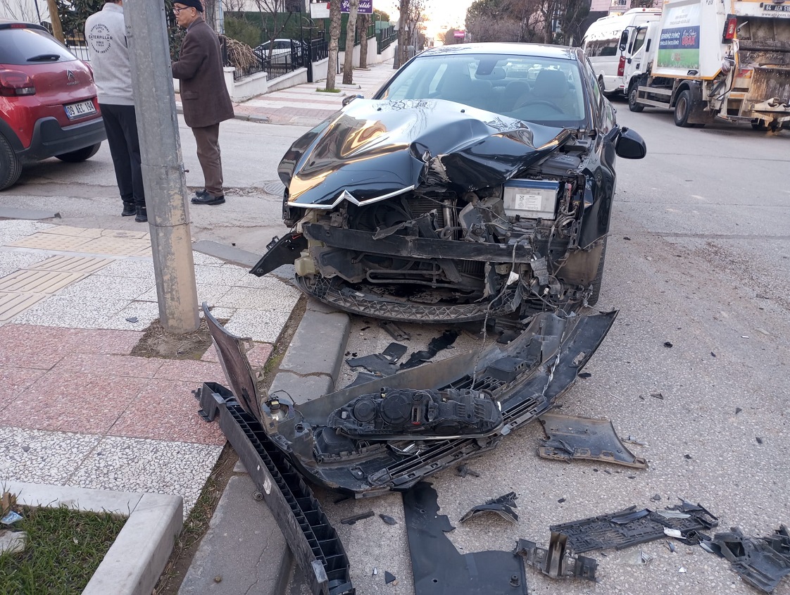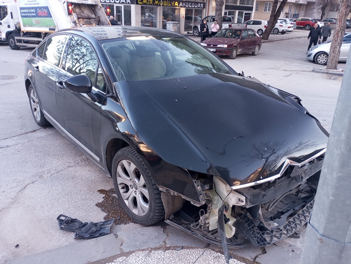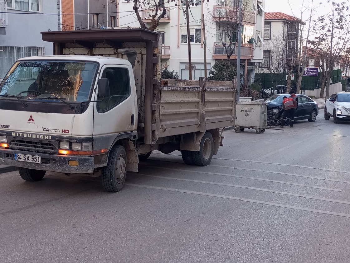 Uşak'ta akşam saatlerinde saat 18:00 civarında meydana gelen kazada, kazaya karışan araçlardan birinde ağır hasar meydana gelirken, 2 sürücüde kazayı yara almadan atlattı.